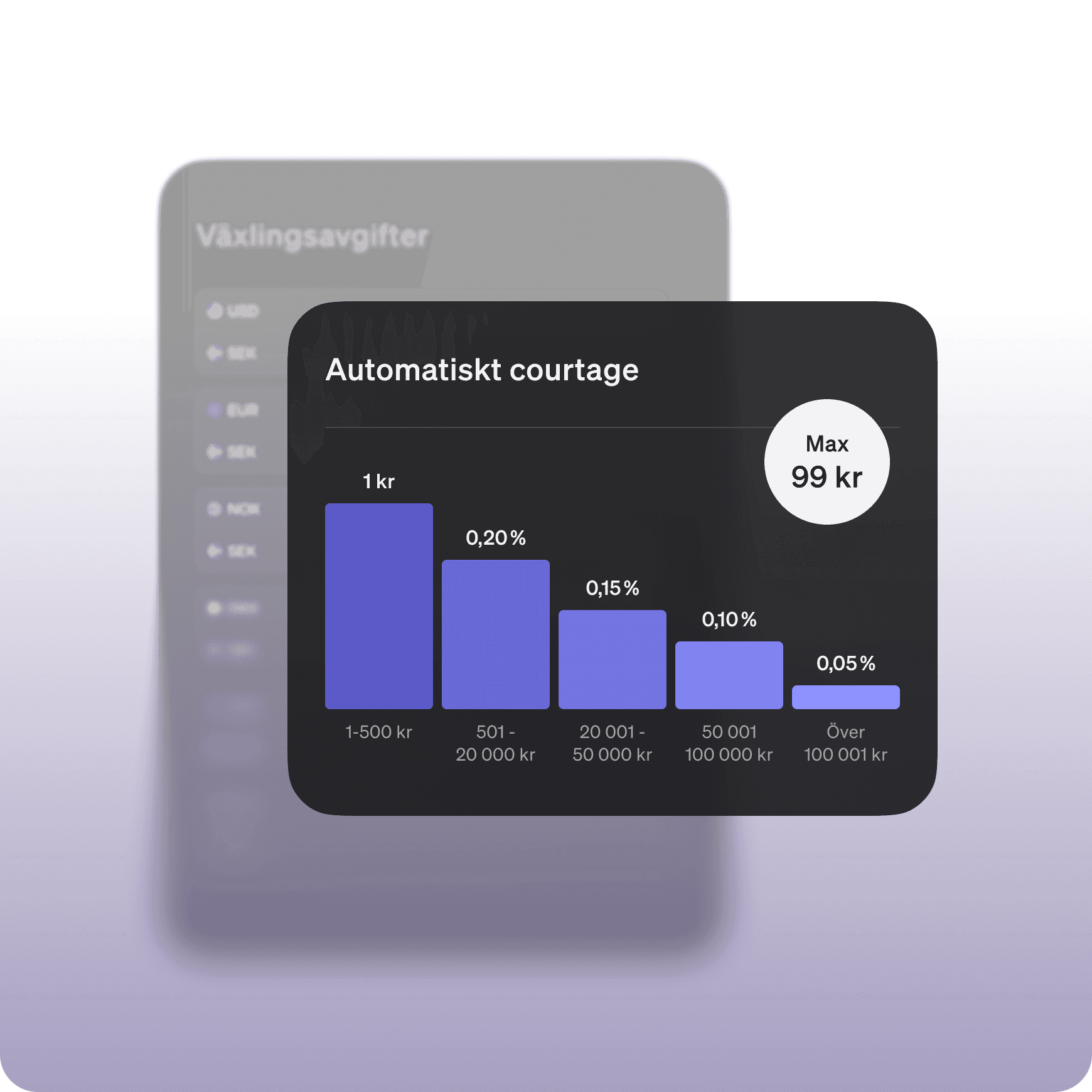 Vårt låga och automatiska courtage ser likadant ut på alla marknader: 1-99 kr.