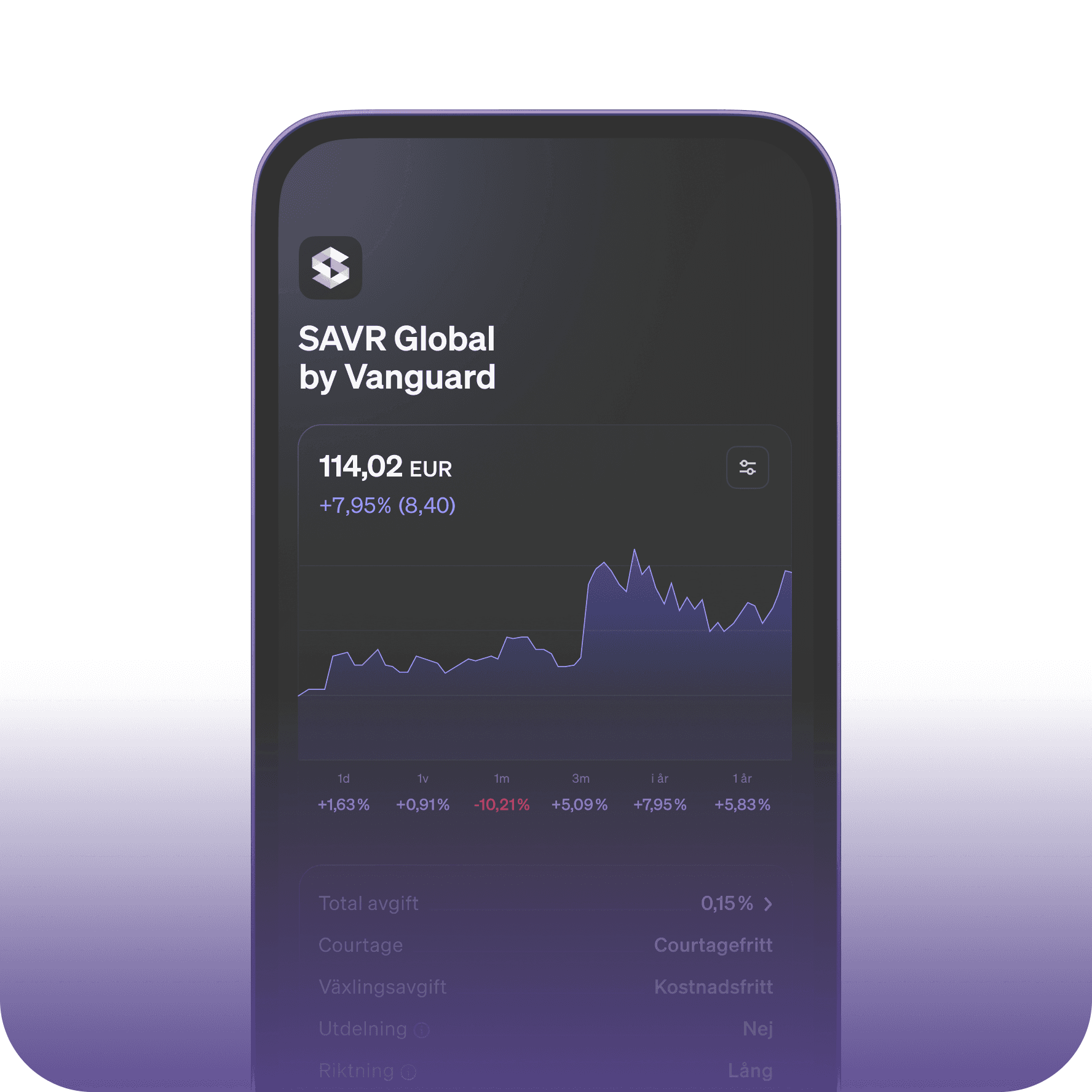 Vårt erbjudande SAVR Global by Vanguard är en bred global ETF med över 2000 bolag, utan ESG-uteslutningar. Du handlar den utan courtage och växlingsavgifter.