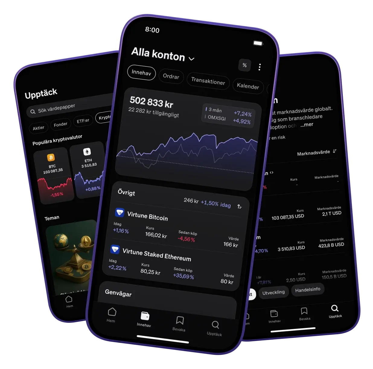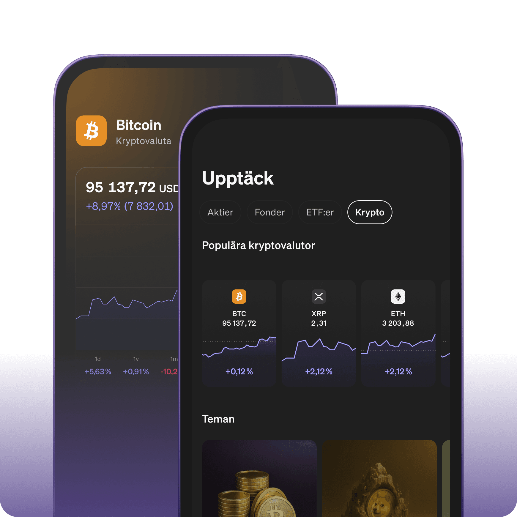 Investera i krypto-ETP:er med exponering mot bl.a. Bitcoin, Ethereum, XRP och Solana – lika enkelt som att handla aktier.